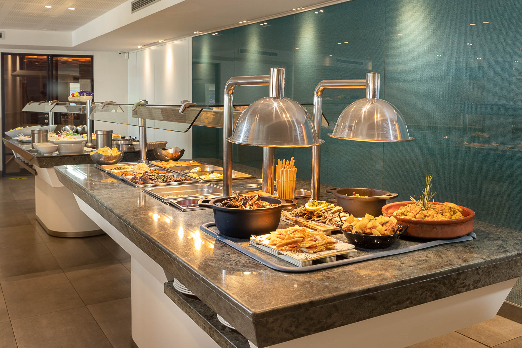 Le restaurant buffet de l’hôtel offre une cuisine méditerranéenne raffinée, complétée par des plats internationaux et des options équilibrées. Possibilité d’adapter les horaires pour les groupes, notamment lors de départs matinaux. Petits-déjeuners renforcés, produits énergétiques, fruits frais et menus adaptés peuvent être organisés sur demande. Le bar panoramique, face à la mer, est idéal pour les moments de détente après les entraînements.